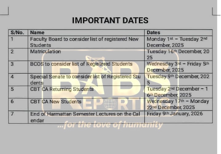 The Management of the University of Ilorin (UNILORIN) has released the updated calendar for the 2025/2026 academic session.